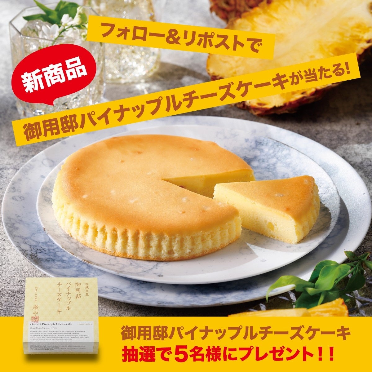 景品:『御用邸パイナップルチーズケーキ』」を抽選で5名様にプレゼント。