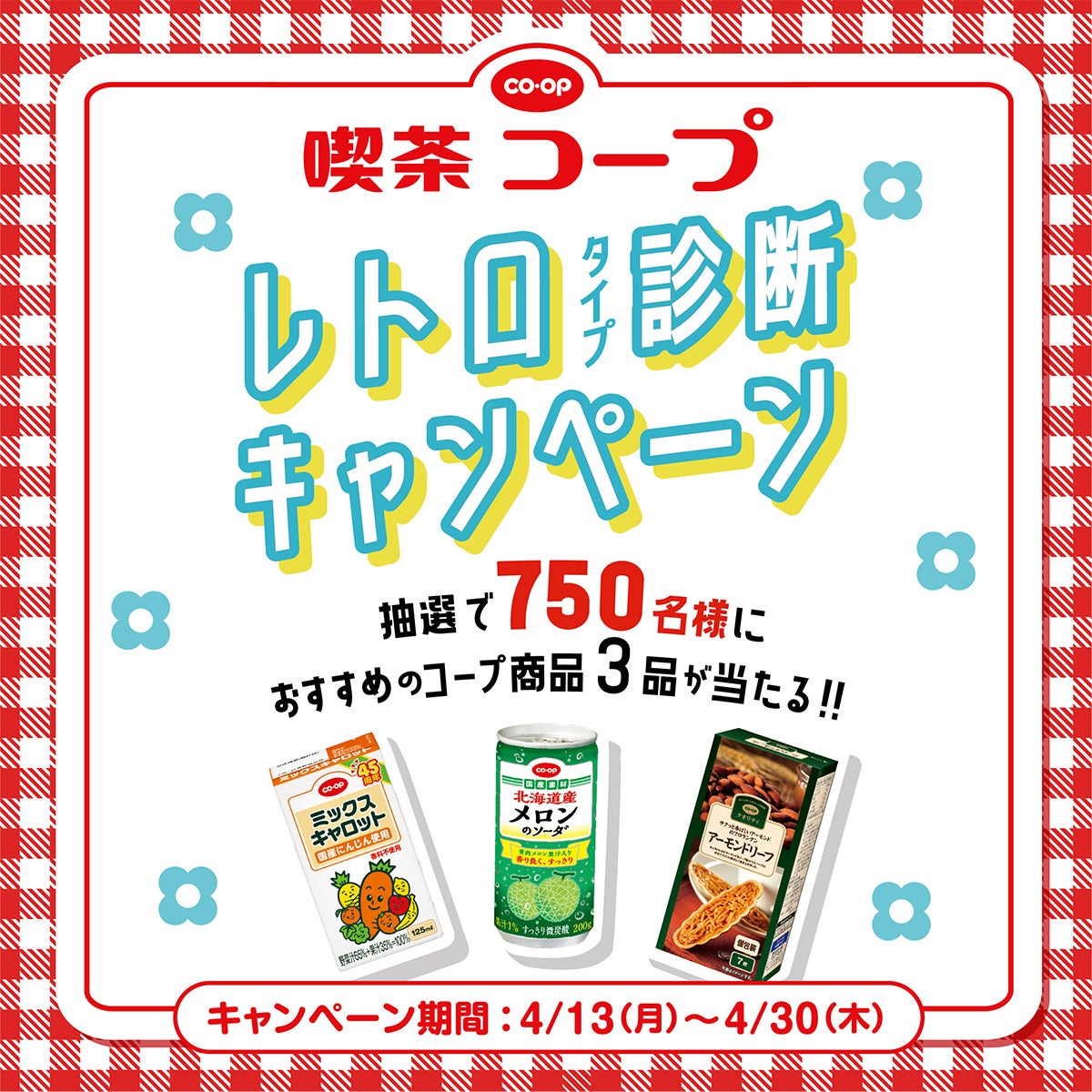 本イベントと連動し、4月13日から4月30日まで、X(旧Twitter)にてプレゼントキャンペーンを実施します。レトロタイプ診断を通して、どこか懐かしい「喫茶コープ」の世界観をご自宅でも、気軽にご体験いただけます。