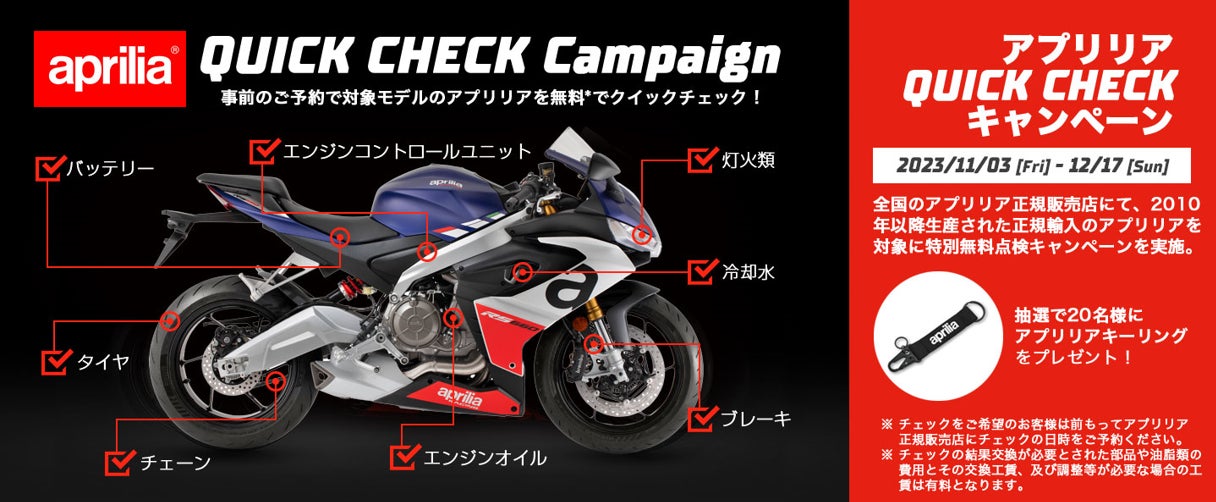 アプリリア クイックチェックキャンペーン2023実施のご案内