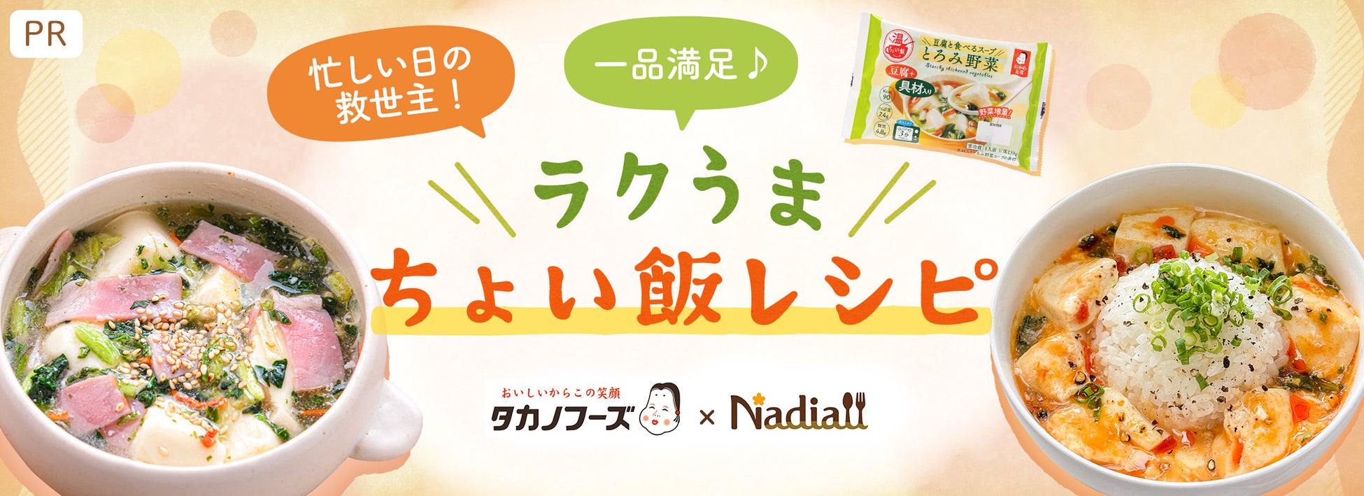 レシピサイト「Nadia」とタカノフーズ株式会社がタイアップ!「ちょい飯も入ってる!おかめ豆腐人気セットプレゼントキャンペーン」と「忙しい日の救世主!一品満足♪ラクうまちょい飯レシピ」を同時公開!