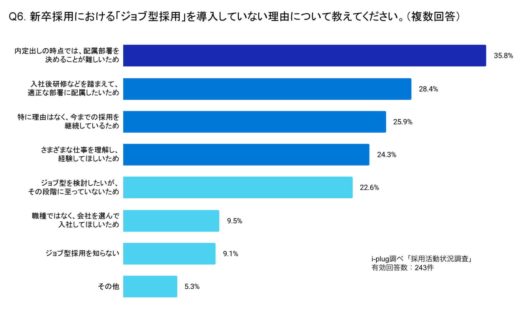 Q6. (Q5にて「ジョブ型は導入しない・未定」と回答した方に伺います。)新卒採用における「ジョブ型採用」を導入していない理由について教えてください。(複数回答/企業対象)