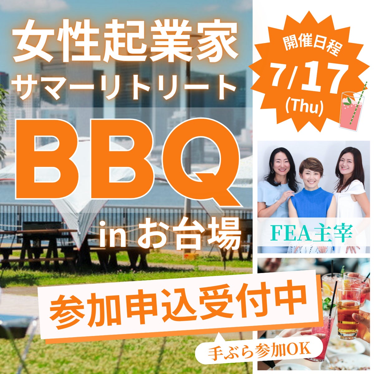 孤独感やつながり不足に悩む女性起業家が増える中、「リアルな共体験」が持つ力が見直されています。女性起業家支援協会(FEA)は2025年7月17日(木)、人とのリアルな交流を求める声が高まる夏の時期に、お台場のオーシャンビューを臨む開放的なロケーションでBBQリトリートイベントを開催します(主催:株式会社フォーチュンアンドカンパニー)。