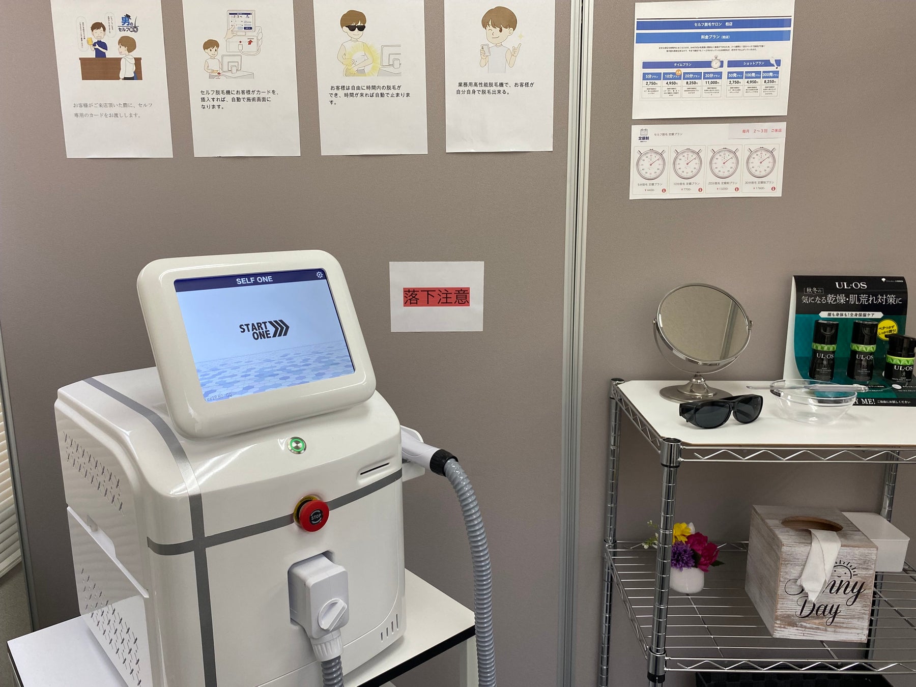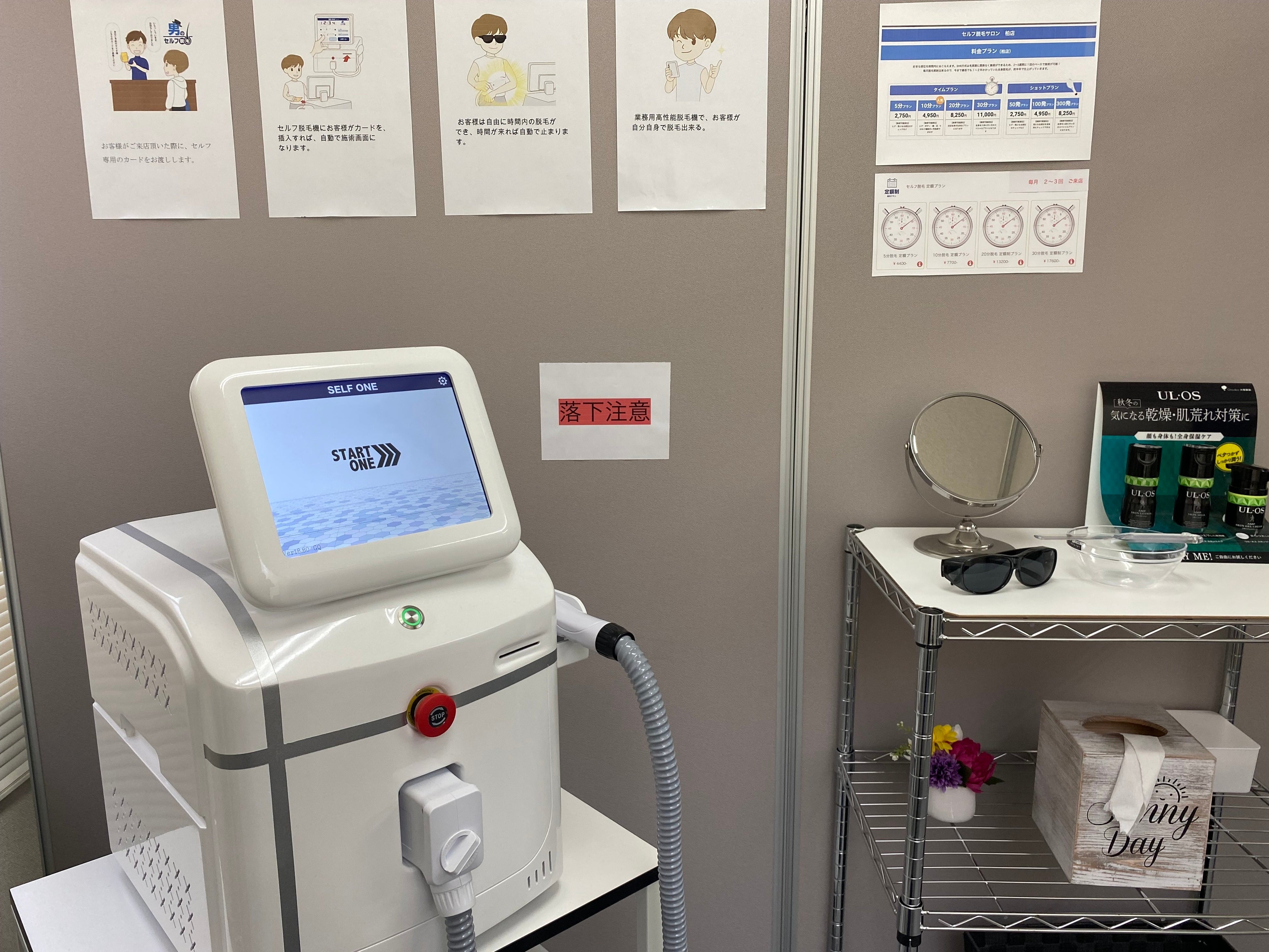 従来の施術に使う脱毛機SELFONEをご自身で操作してメンズ脱毛を行う事が出来ます!