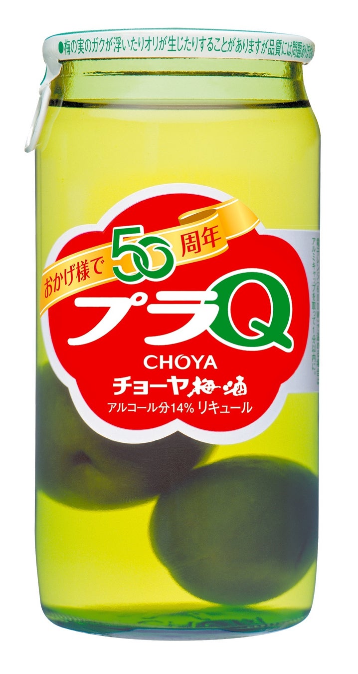 「プラQ」は紀州産を中心に国産梅のみを100%使用し、酸味料・香料・着色料を使用せずに作った本格梅酒です。チョーヤが1959年に梅酒を発売開始した当時は、1800ml、1600ml、900mlといった大型容器製品のみでしたが、1973年に初めてのカップタイプの小型容器製品としてラインアップされた商品が「プラQ」です。カップ型容器でありながら梅の実が2個入っており、発売以来手軽に楽しめる実入り本格梅酒として多くの方々に支持をいただき、おかげ様で今年発売50周年を迎えることができました。
