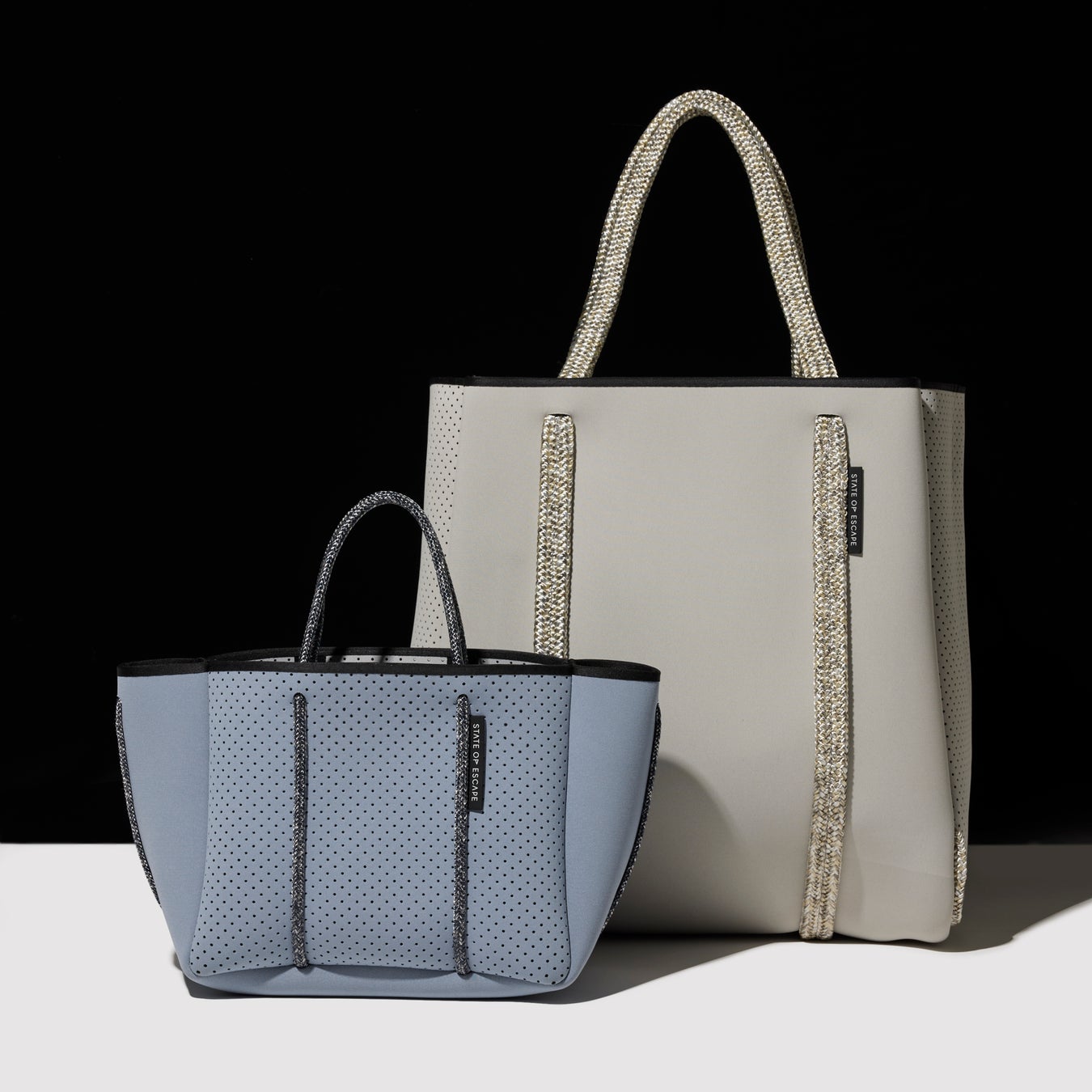 ネオプレン素材を用いたバッグで定評のあるオーストラリア発のバッグブランド<ステートオブエスケープ>。人気の”ESCAPE”・”PETITE ESCAPE”・”SATELLITE CITY”の3モデルをバーニーズ ニューヨーク限定カラーでオーダー。やさしいブルーとやわらかなグレーを組み合わせた爽やかなカラーリングと、どんなコーディネートにも合わせやすいベージュ―にアイボリーを組み合わせたベーシックの中にも一捻りある組み合わせです。お仕事から趣味やレジャーまで幅広い用途でお使いいただけます。