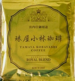 ロイヤルブレンドは、戦後『宮内庁御用達』業者として指定を受けた「珠屋小林珈琲」自慢の一品です。珈琲の苦み、旨味、甘味を感じつつ酸味のさわやかさも感じられる絶妙なバランスは一度飲むと虜になること間違いありません。