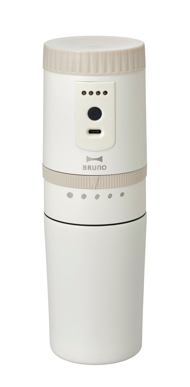 電動ミルコーヒーメーカーは、電動ミル・ドリッパー・真空カップが一体になった大人気「BRUNO」のコーヒーメーカーです。コンパクトかつ充電式なので場所を選ばず、オフィスやおうち時間のリラックスタイムにお気に入りの一杯を味わうことができます。