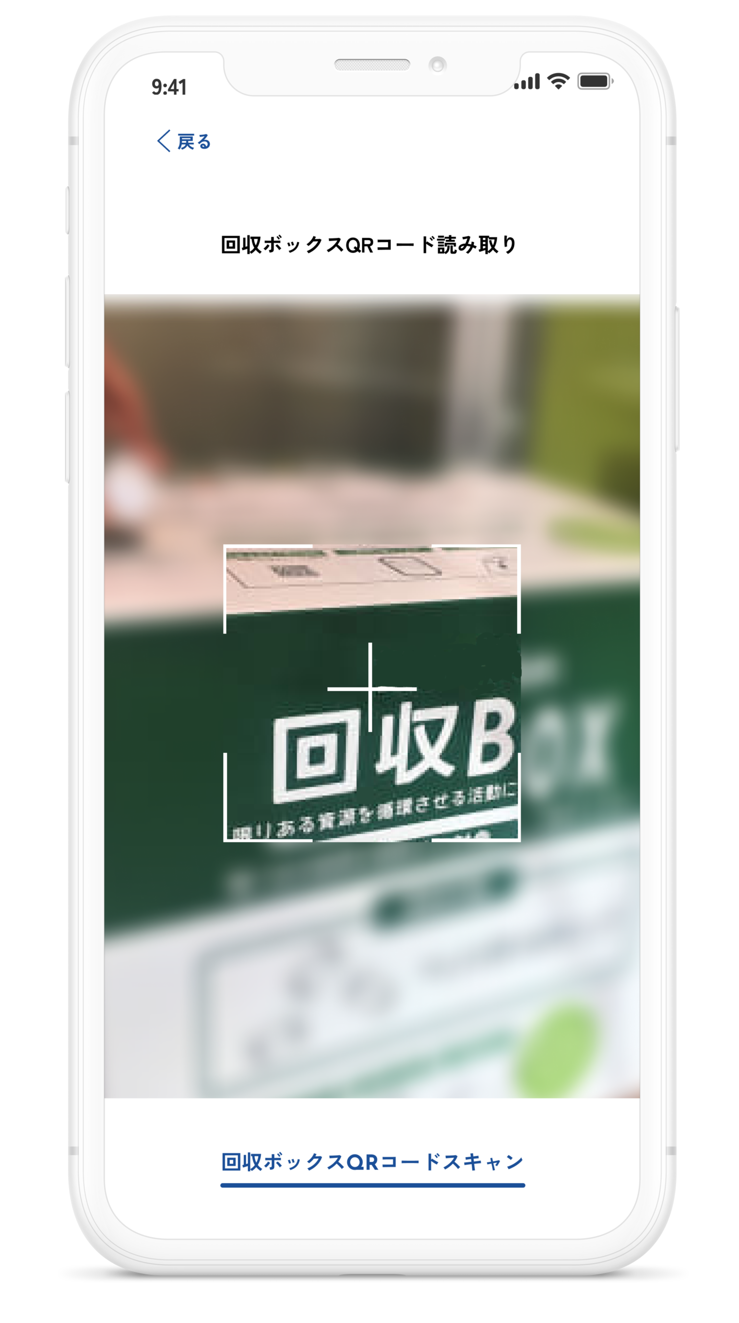 中央:回収ボックスにおけるQRコードスキャン画面のイメージ