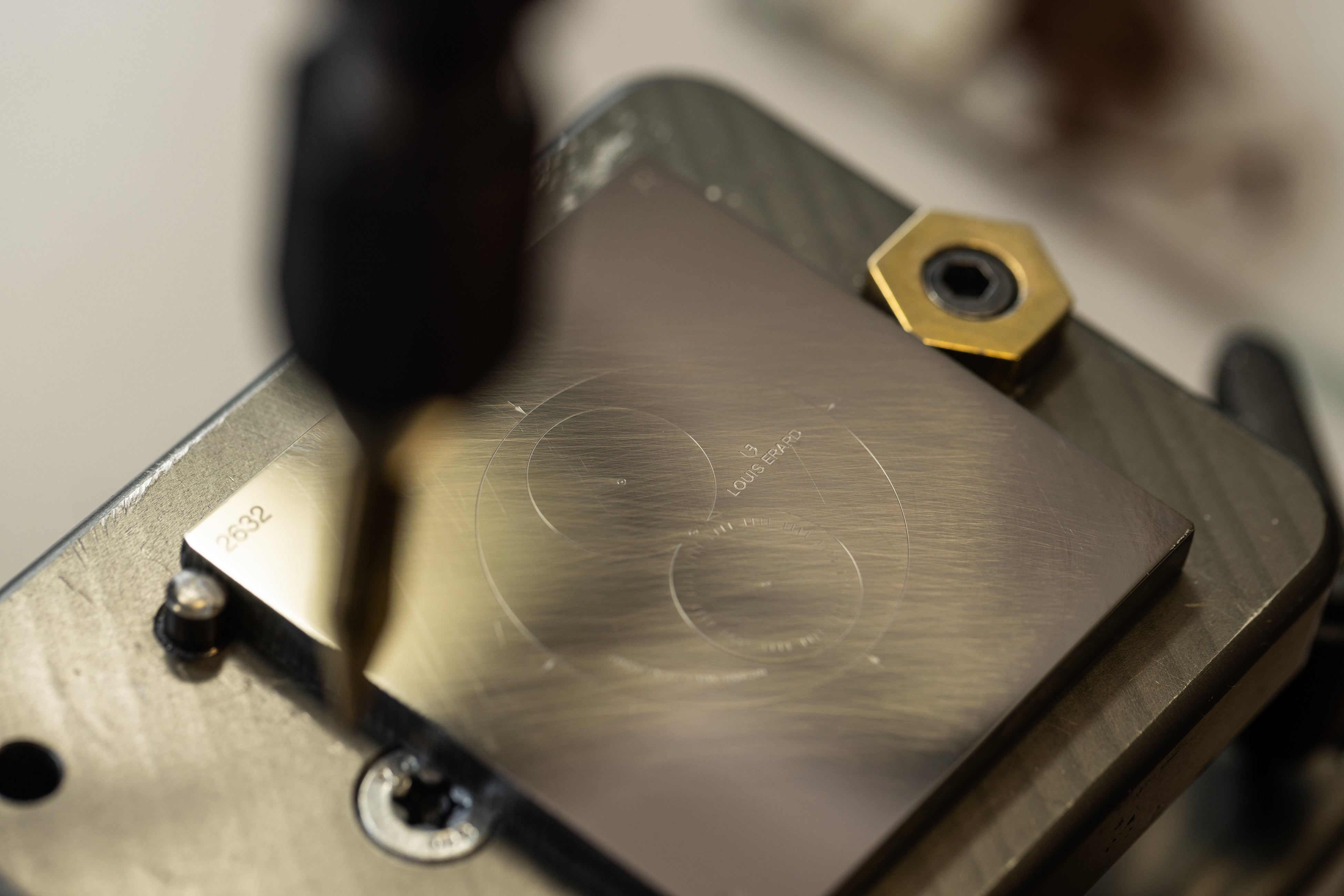 ルイ・エラールは、伝統的なエナメル工芸技法における先駆的な存在であるドンツェ・カドラン社との技術的かつ芸術的な協力を得て、完璧な作品を追求しました。「グラン・フー」と呼ばれるエナメルは、複数の鉱物から成るエナメルパウダーを振りかけた銅板を800°C程度の温度に加熱された炉で焼き上げ、美しいガラス皮膜面を焼成します。滑らかで均一な表面を得るために何度もこの工程が繰り返され、通常5〜7層から成るグラン・フー エナメルが出来上がります。