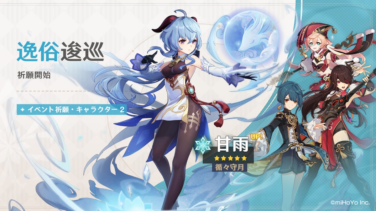 miHoYoの『原神』、★5「鍾離(岩)」(CV:前野智昭)と★5「甘雨(氷)」(CV:上田麗奈)が登場する期間限定イベント祈願を1月25日より開催!他
