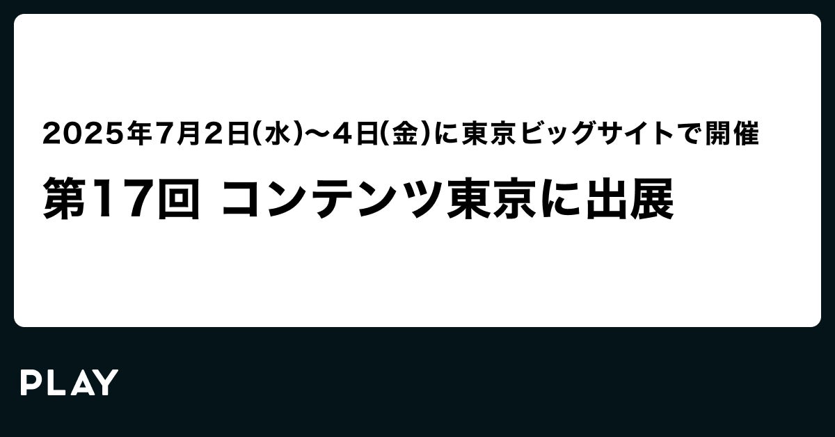 株式会社PLAY(本社:東京都渋谷区、代表取締役社長:黒田和道)は、この度、2025年7月2日(水)~4日(金)に東京ビッグサイトで開催される「コンテンツ東京」への出展が決定したことをお知らせいたします。