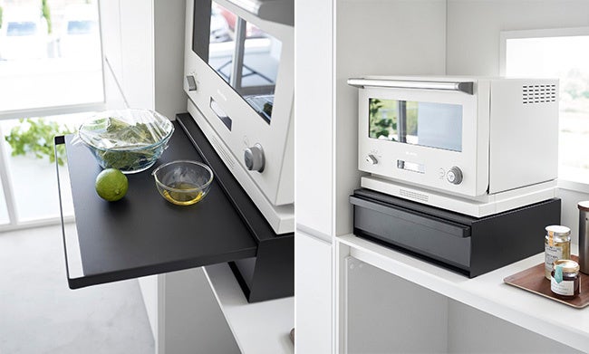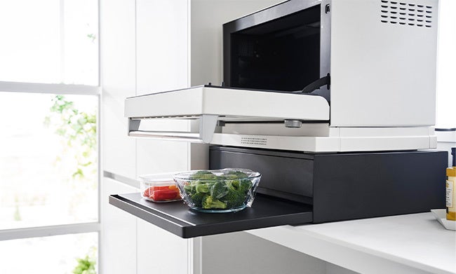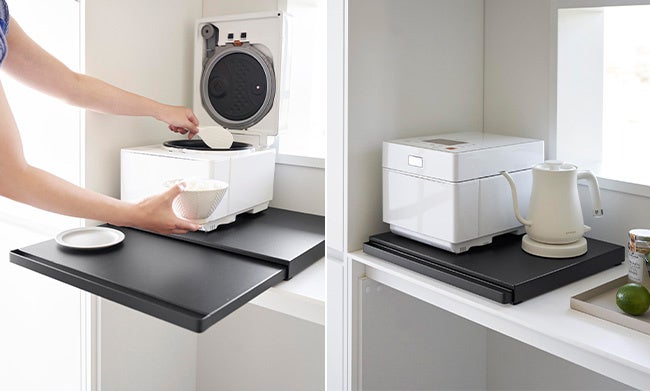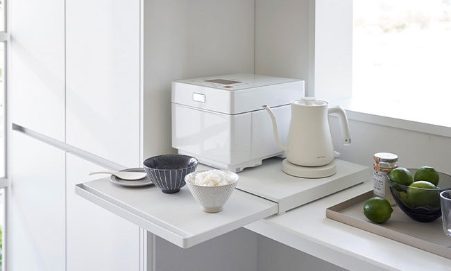 家電下を便利な作業スペースにできるキッチンスライドテーブル。