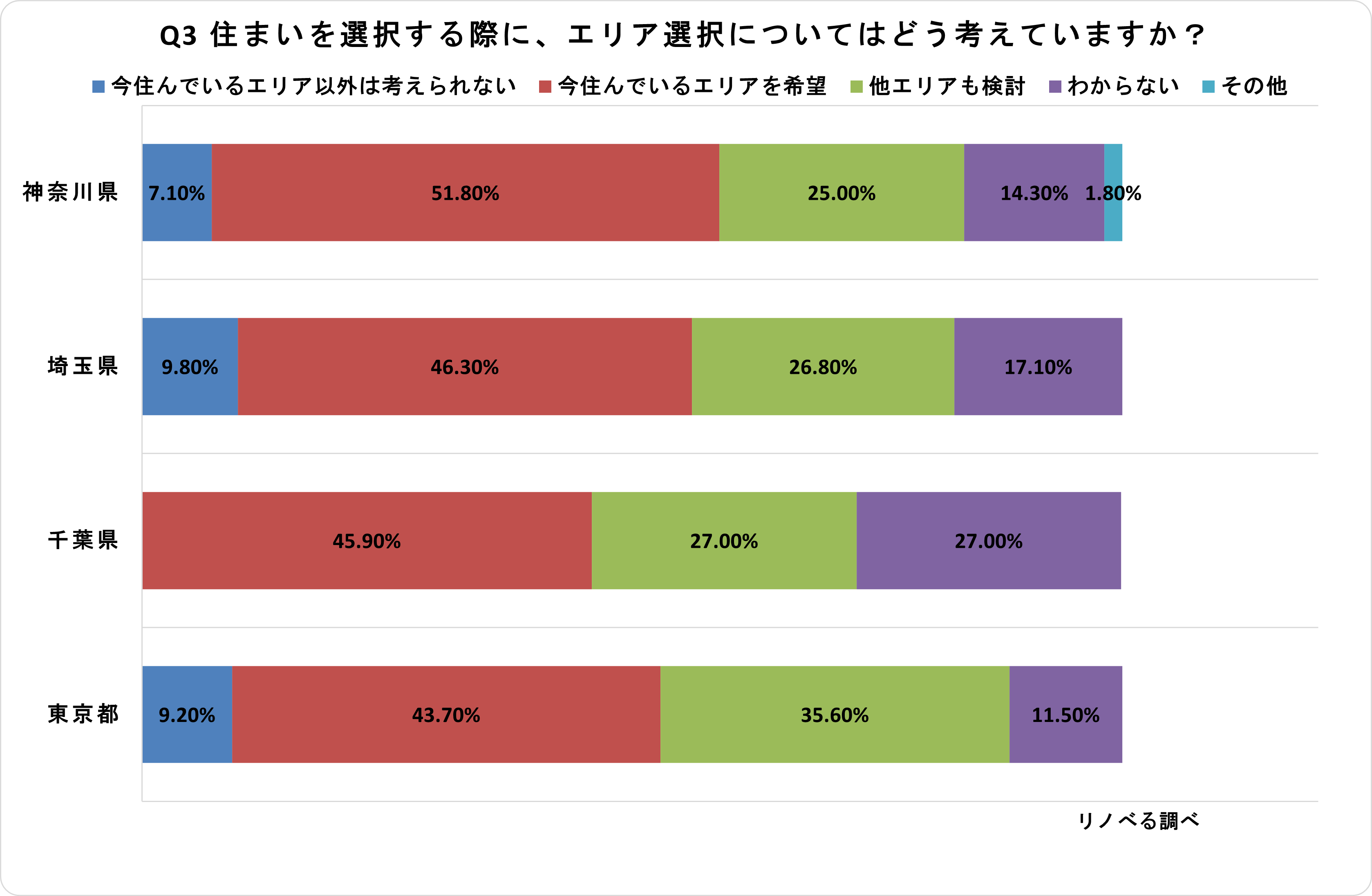 住まいのエリア選択について地域別に比較したところ、神奈川が最もエリアへの愛着が強いという結果に