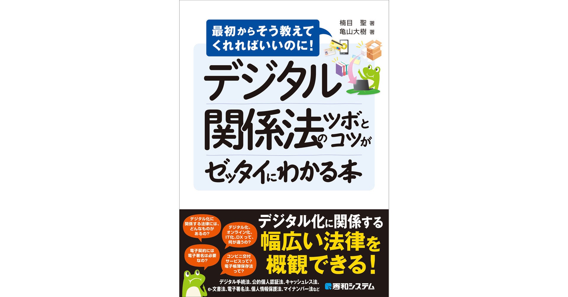 株式会社秀和システム(東京都・代表取締役会長兼社長 上田智一)は、2023年9月16日、新刊『デジタル関係法のツボとコツがゼッタイにわかる本』を発刊します。