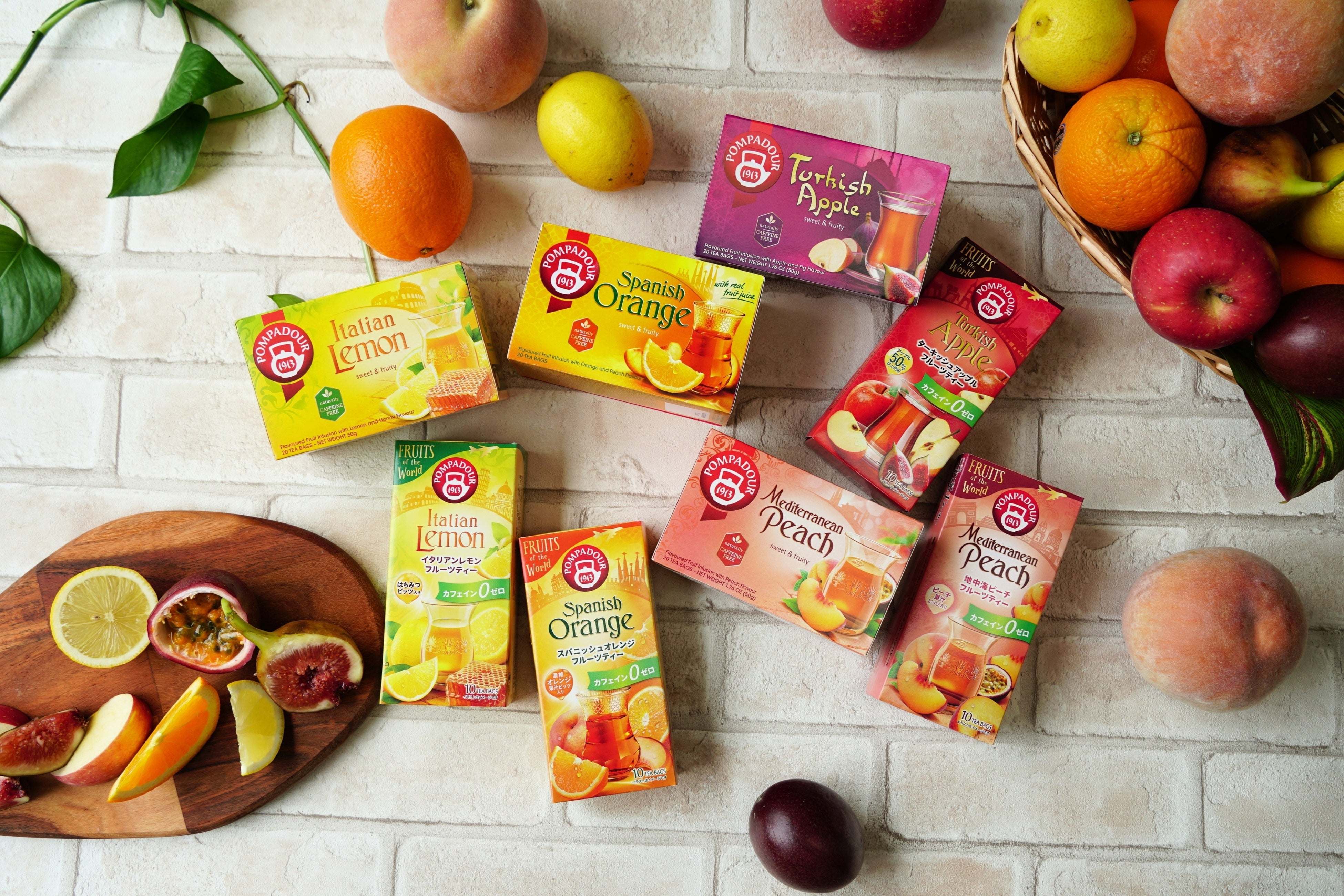 ドイツのハーブティーブランド「ポンパドール」が展開している「フルーツ オブ ザ ワールド」は、世界各国の果物をイメージした、みずみずしい香りと飲みやすいやさしい甘さが特徴のフルーツティーです。