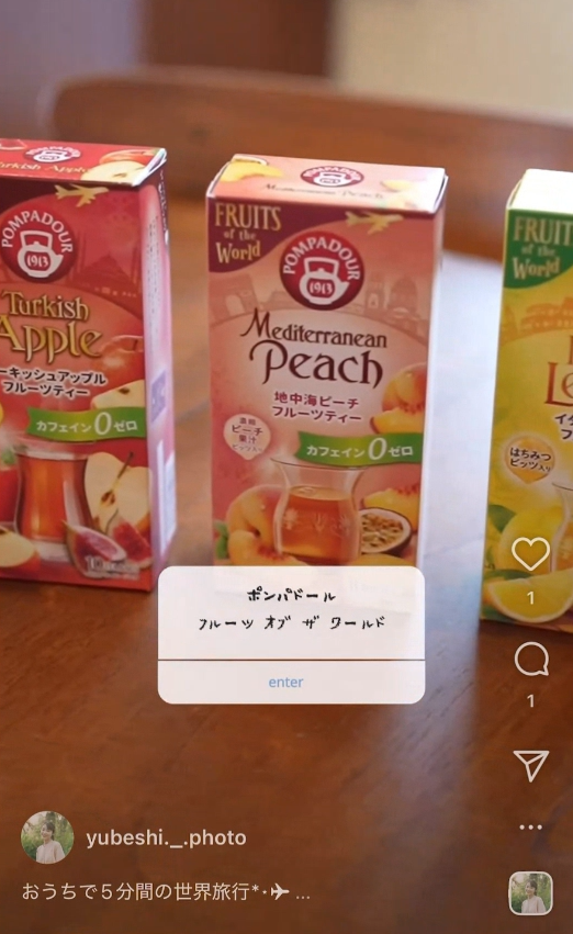 雑誌『リンネル』でレギュラーモデルを務めるゆべしさんがフルーツティー「ポンパドール フルーツ オブ ザ ワールド」の楽しみ方をInstagramにて公開しました。