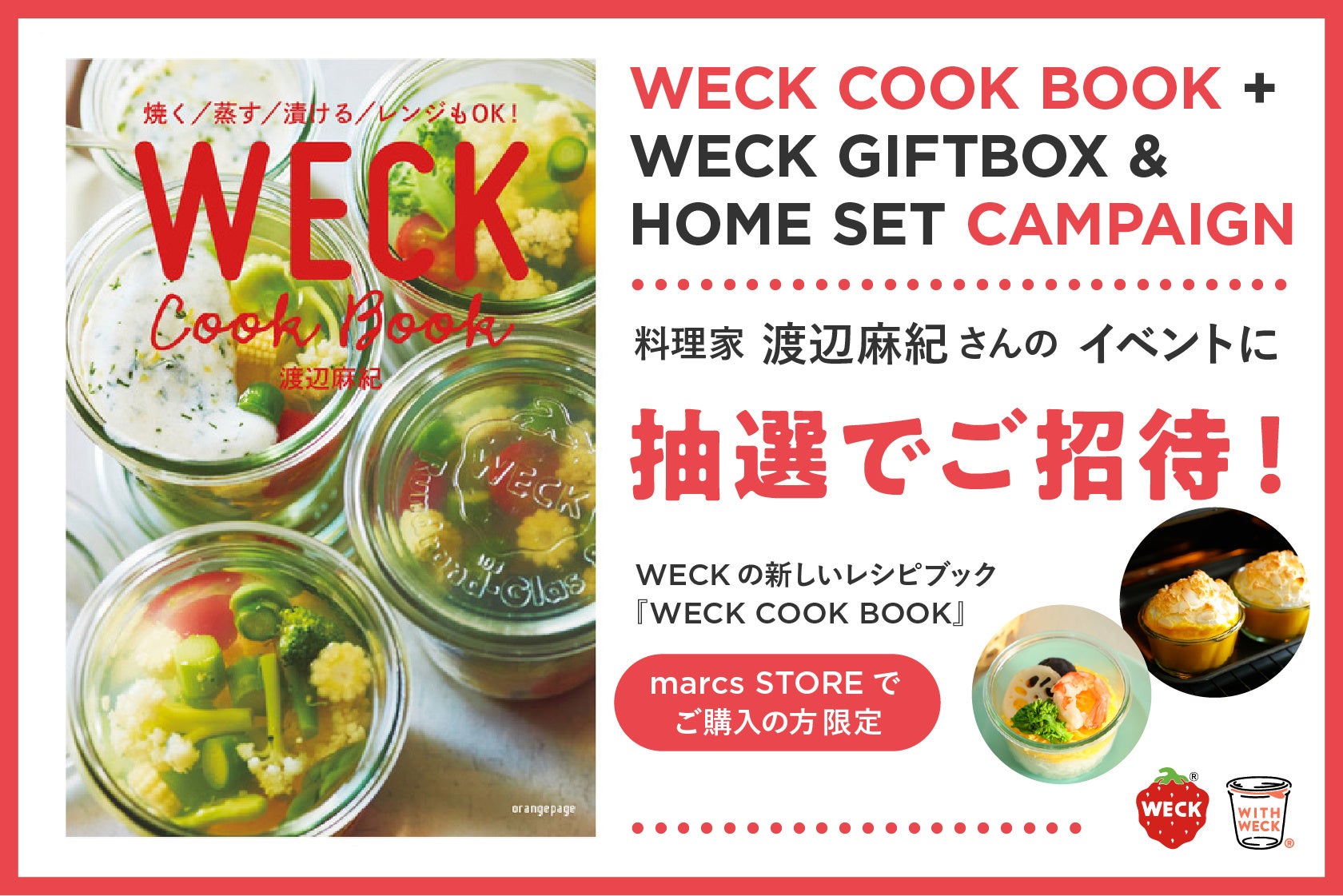 “日常をより豊かにする” ビジョンを掲げ、インテリア・キッチン・ライフスタイル商品の卸売及び販売を行う株式会社マークスインターナショナル(本社:東京都渋谷区恵比寿西2-21-1、代表取締役:名取至)が輸⼊販売を⾏うドイツ製ガラス保存容器のブランド『WECK』の新しいレシピブック「焼く/蒸す/漬ける/レンジもOK! WECK Cook Book」(渡辺麻紀・著)が、株式会社オレンジページより2025年5月26日(月)に刊行され、マークスインターナショナルが展開するECサイト(marcs STORE 本店|https://marcs.shop/ 、楽天市場店 | https://www.rakuten.co.jp/marcsstore/)、全国の書店およびインテリア・ライフスタイルショップにて販売されることをお知らせいたします。