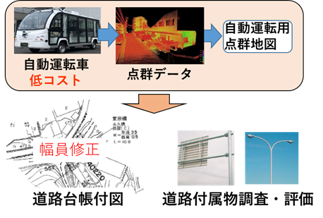 レベル 4 自動運転サービスを実現させるため、実証実験が活発に行われています。しかしながら安全視点と事業視点の課題が残されています。安全視点では、死角のある交差点へ進入する場合に、安全確認のための長時間停車や人の介入といった課題、遠隔監視サポートを必要とするといった課題があります。また事業視点では、自動運転車が高コストである他、周辺技術の採算性やコストが見合わない、デマンド交通システムと連携できないといった課題があります。そこで、本プロジェクトでは、これらの安全視点と事業視点の課題解決を目指しました。