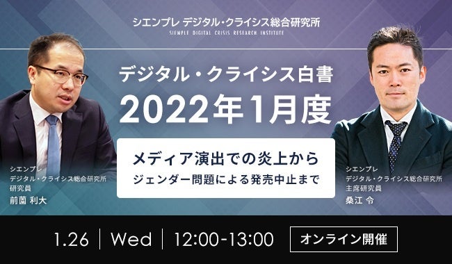 「デジタル・クライシス白書-2022年1月度-メディア演出での炎上からジェンダー問題による発売中止まで-」セミナー実施のお知らせ