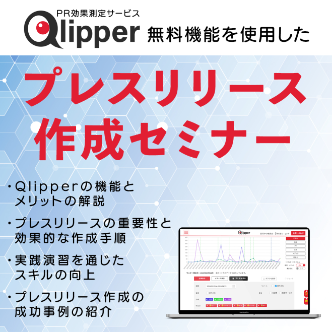 【広報PR初めての方向け】Qlipper無料機能を使用したプレスリリース作成セミナーのご案内