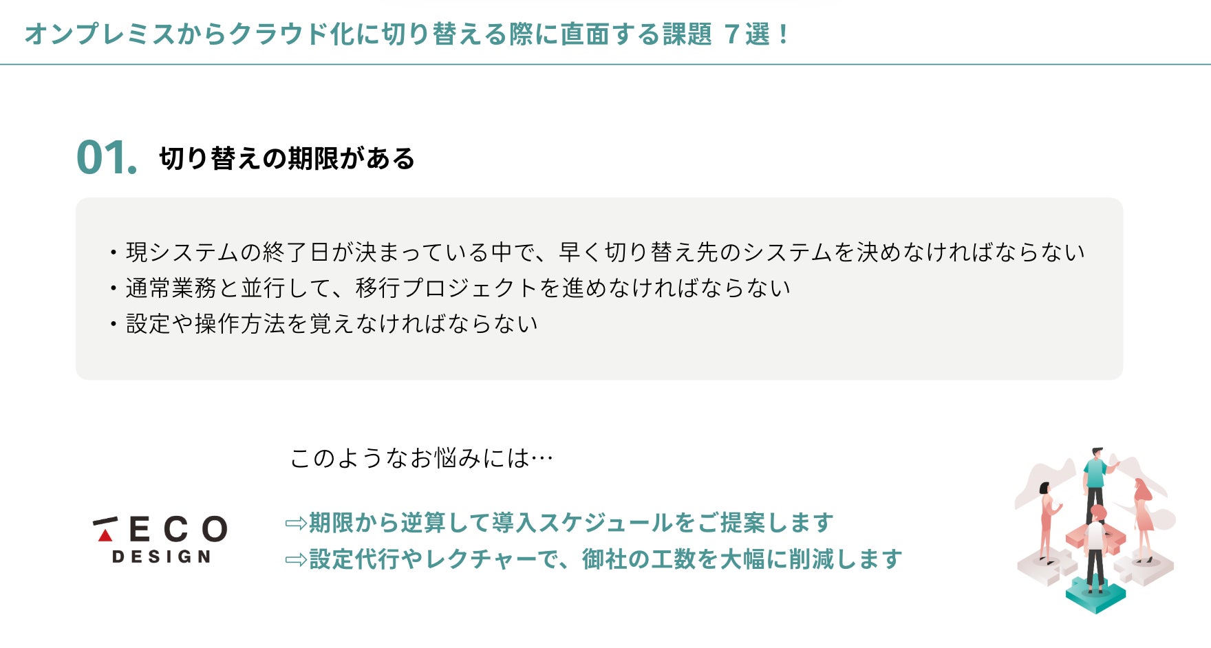切替の期限、自社に合うシステムの選定、セキュリティ…