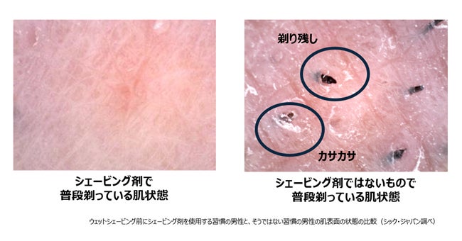 *7 ウェットシェービング前にシェービング剤を使用する習慣の男性と、そうではない習慣の男性の肌表面の状態の比較(シック・ジャパン調べ)