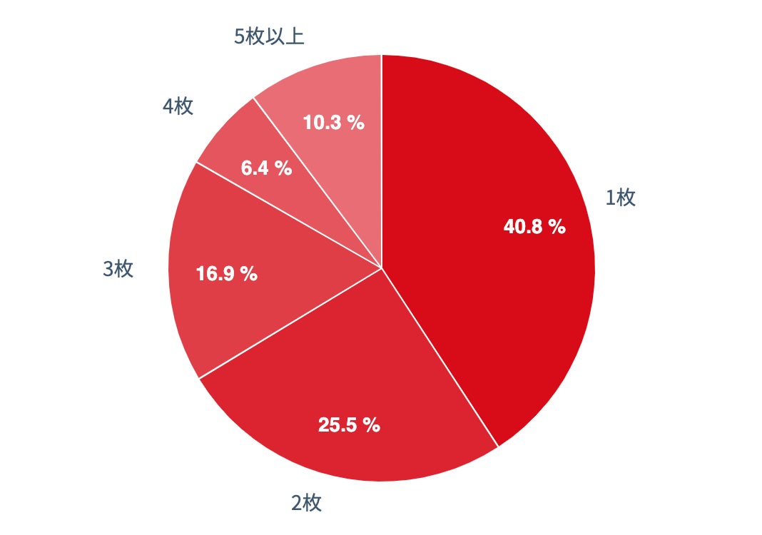 「1枚」が最も多く、「2枚」「3枚」と順番に続く形になったが、複数のクレジットカードを持ち合わせている人が全体の6割にのぼることもわかった。