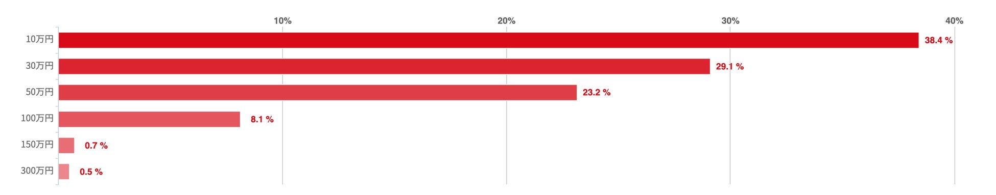 「10万円」が38.4%で最も多く、「30万円」が29.1%でこれに続いた。また、「50万円」との回答も23.2%と多かった。