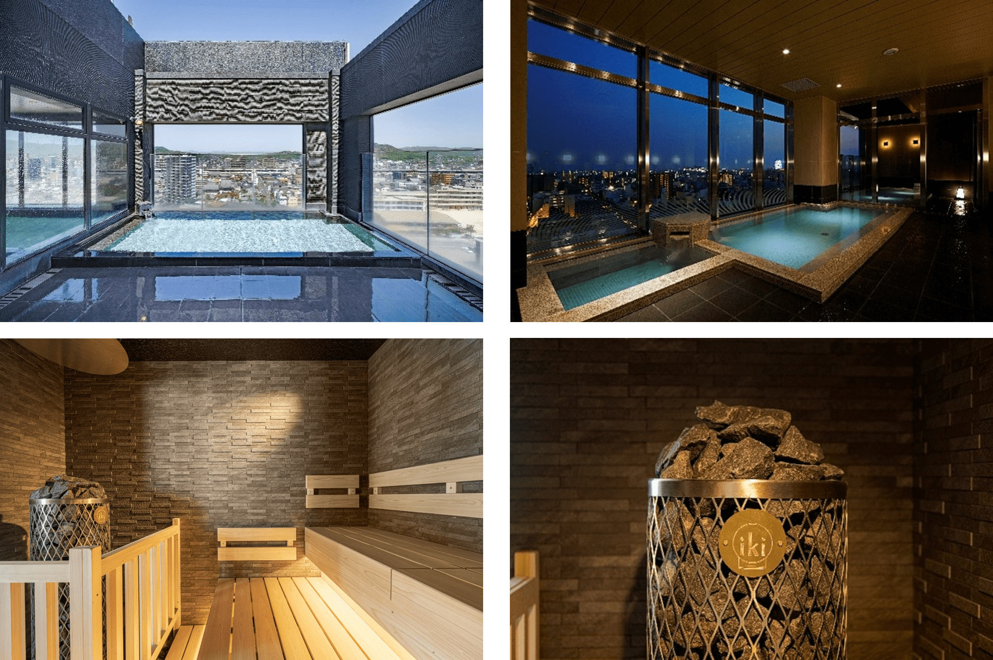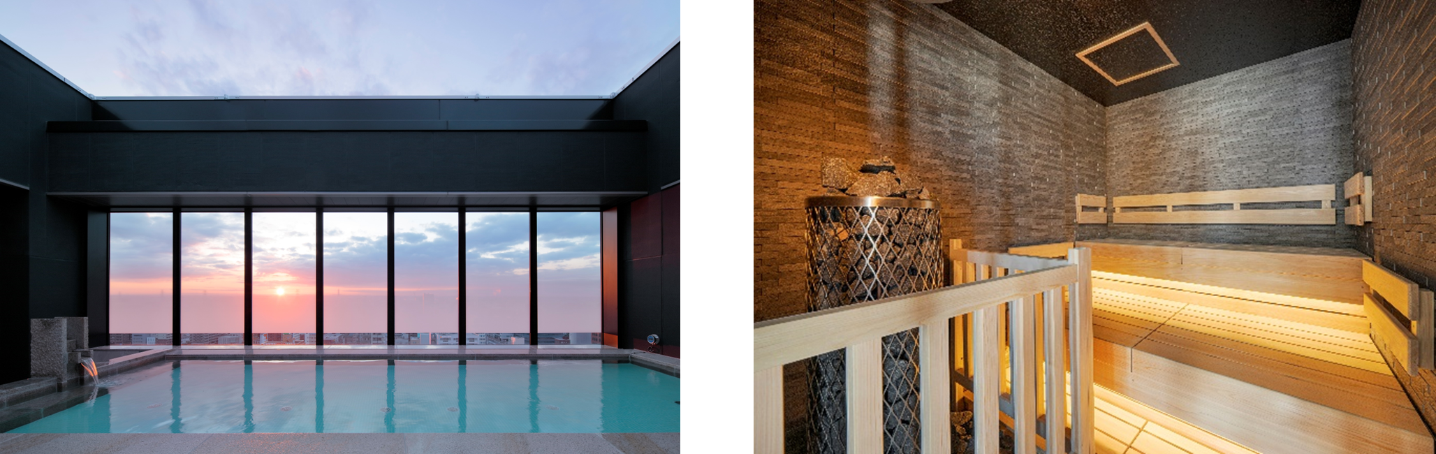 カンデオホテルズはスカイスパにとても拘りを持っており、内風呂は開放感のある非日常的な空間で、のんびり入浴できます。また、多くの施設で男性サウナにはドライサウナ、女性サウナにはミストサウナを設置していますが、近年のサウナブームの高まりと多様化するお客様のニーズにお応えするため、熊本新市街、宇都宮以降の新規開業施設では男女ともにオートロウリュ形式のサウナを導入することを決定しました。