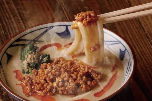 ショッピングセンターなどの一部店舗では、毎年好評の『うま辛担々うどん』が再登場。辛さ際立つ濃厚な担々スープに、辛さと肉感が特徴の合わせそぼろ、香味ラー油、彩りのほうれん草、かつお粉が合わさり、打ち立てうどんとも相性抜群です。