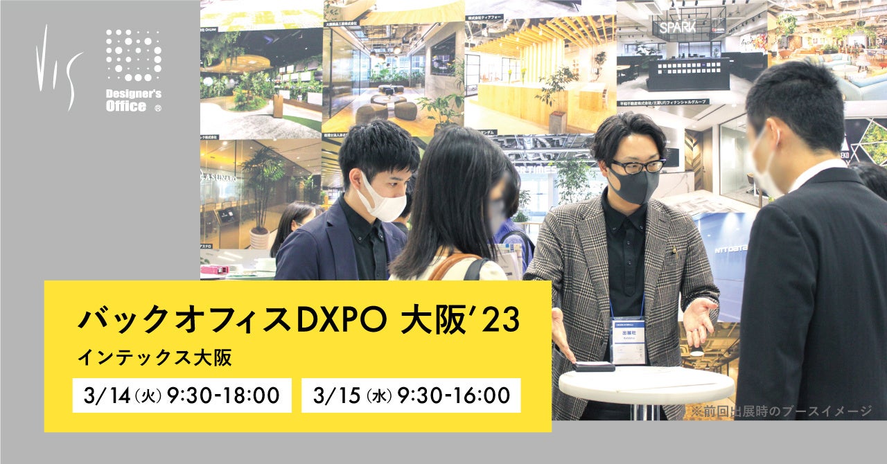 デザイナーズオフィスを手がけ、「はたらく」をデザインする株式会社ヴィス(本社:大阪市北区、代表取締役社長:金谷智浩)は、2023年3月14日(火)、15日(水)にインテックス大阪(大阪市住之江区)にて開催される企業の業務改革・DX推進をテーマとした展示会「バックオフィスDXPO」に出展することをお知らせします。