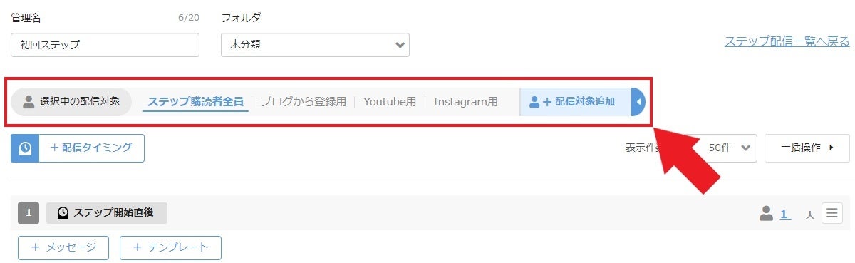 アップデートにより、ステップ配信で配信対象者の設定が可能になりました。