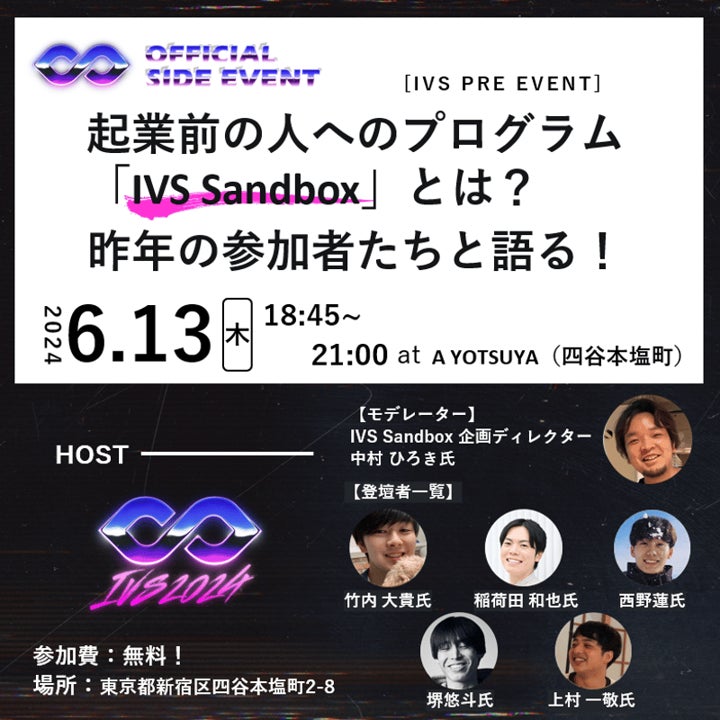 昨年参加者の生の声が聞ける!IVS Sandboxをテーマにしたプレイベントも開催