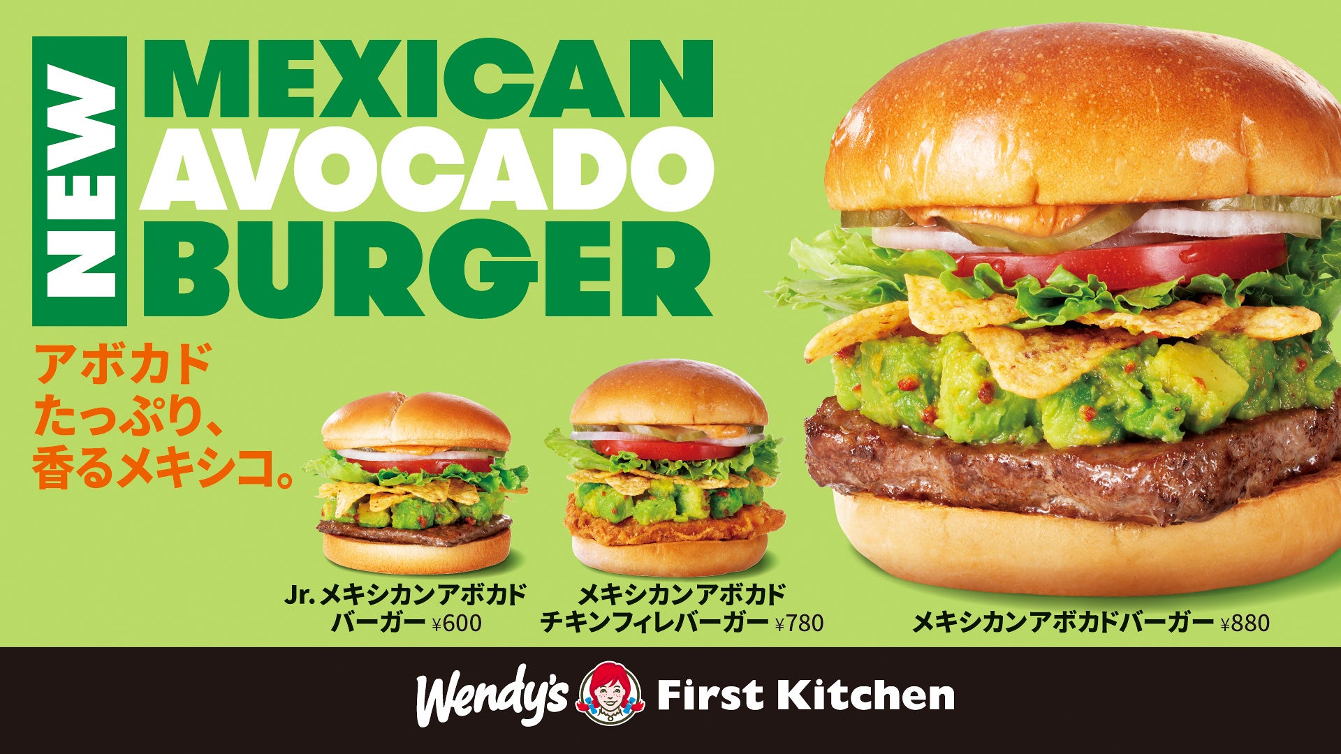 たっぷりアボカド&トルティーヤチップスで南米の香り メキシカンアボカドバーガーなど2種 6/22発売!新店舗「26泉佐野安松店」で16日から先行販売