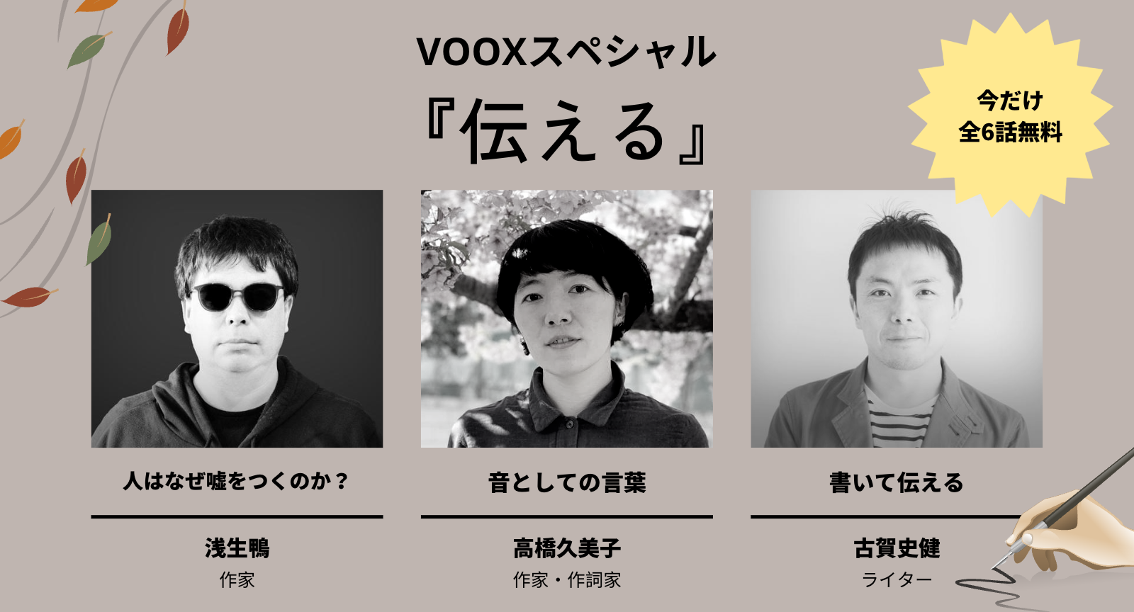 人間は「伝える」ことからは、逃げられません。本スペシャルでは、伝えるプロ3人(浅生鴨さん、高橋久美子さん、古賀史健さん)が、其々の「伝え方」へのこだわり、より伝わるための工夫を語るシリーズを無料公開します。