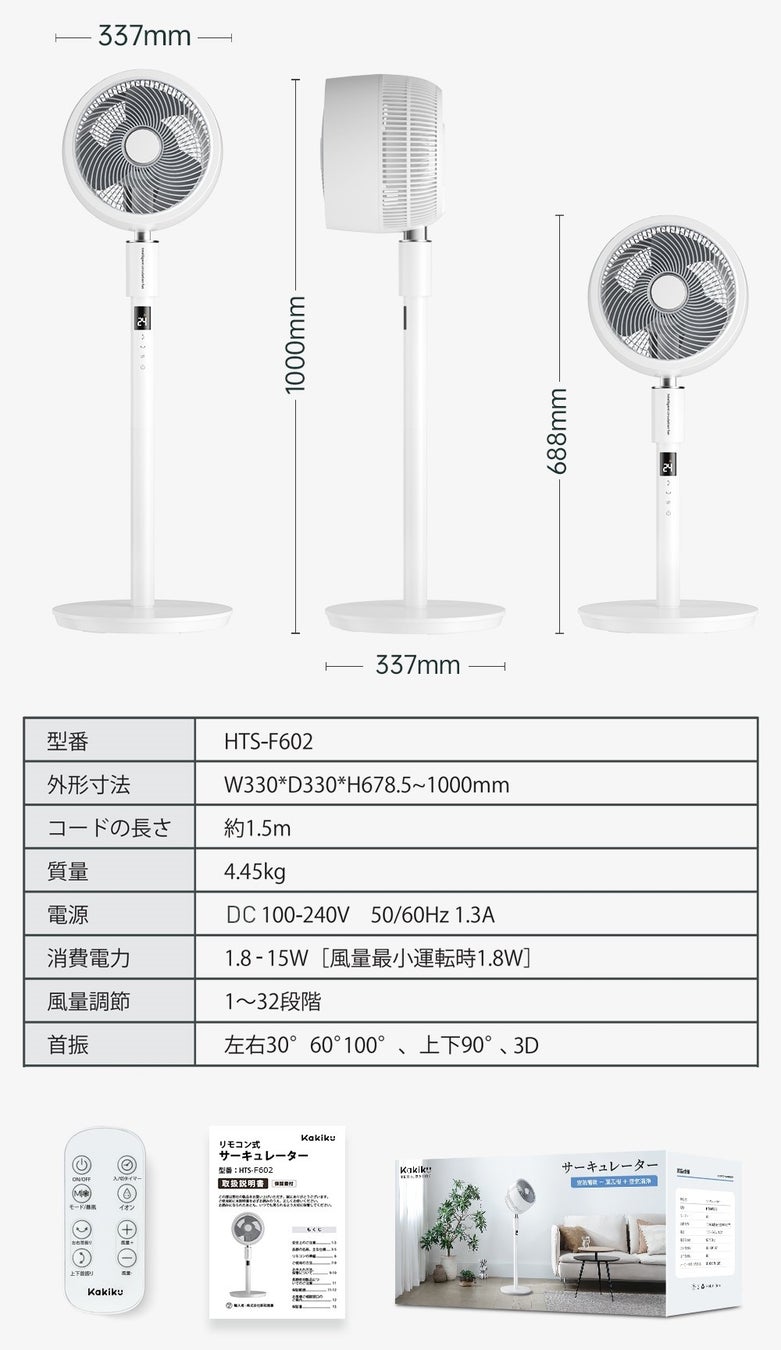 F602サーキュレーターは【扇風機&イオン発生・空気清浄機&3Dサーキュレーター】すべての機能を持つ、コスパ最高のファンです。1台で3役こなす万能性を持っています。