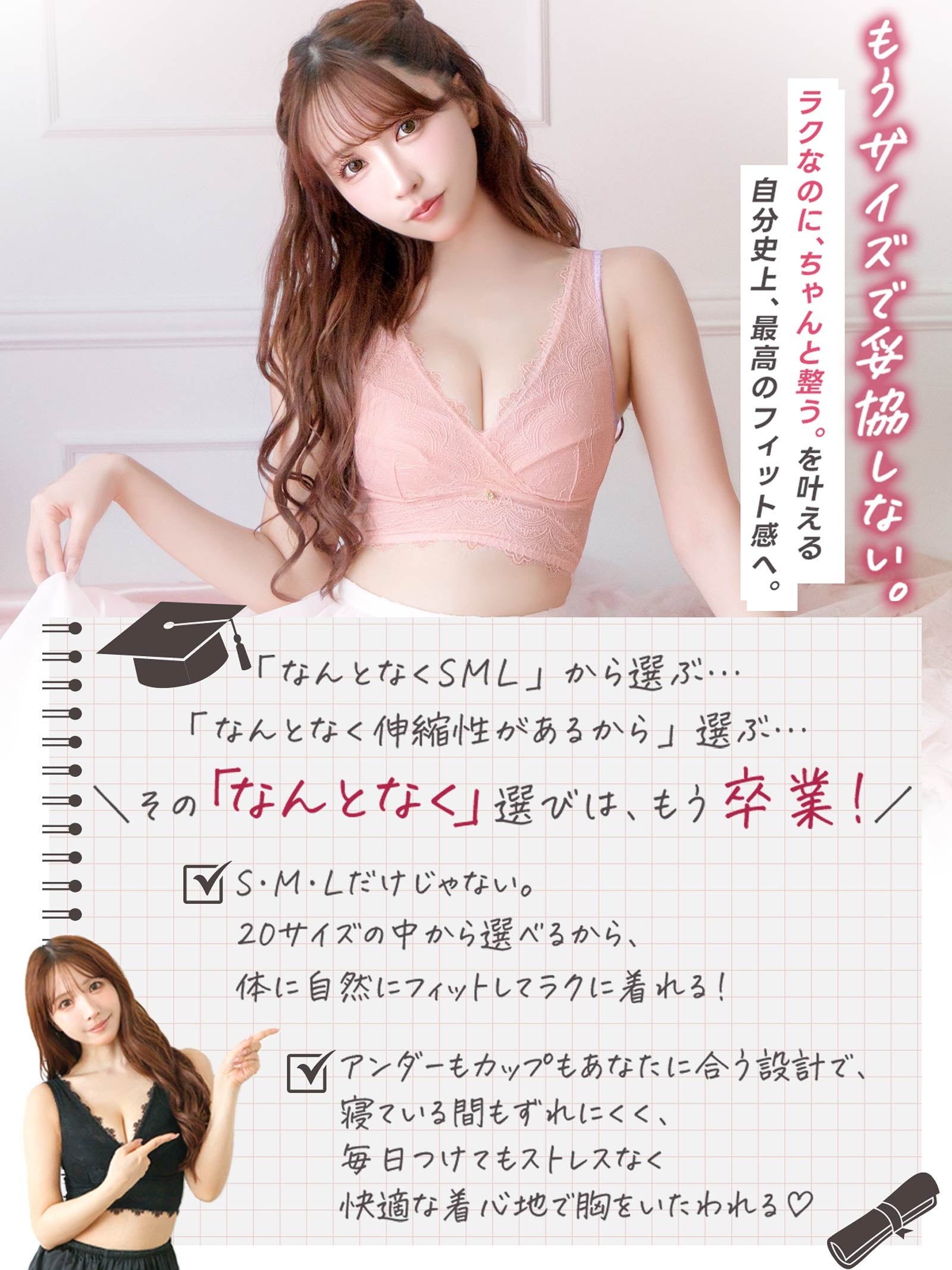 バストケア初心者でも手軽に始められるナイトブラを、飽くなき探求心を持つ三上悠亜がこだわり抜いてプロデュース。フィット感を重視し、幅広いサイズ展開で一人ひとりに寄り添います。