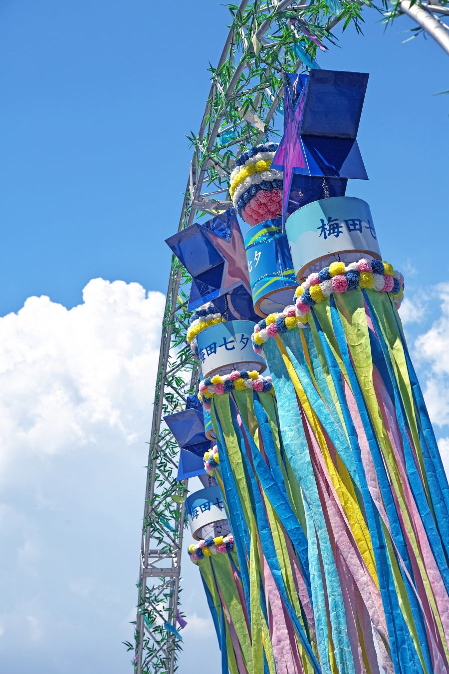 「東北三大祭り」の1つである「仙台七夕祭り」の感動をここ梅田でも味わっていただきたいという思いで始まった梅田七夕は、毎年6月から「仙台七夕」の開催日(8/6-7-8)まで新梅田シティを彩ります。