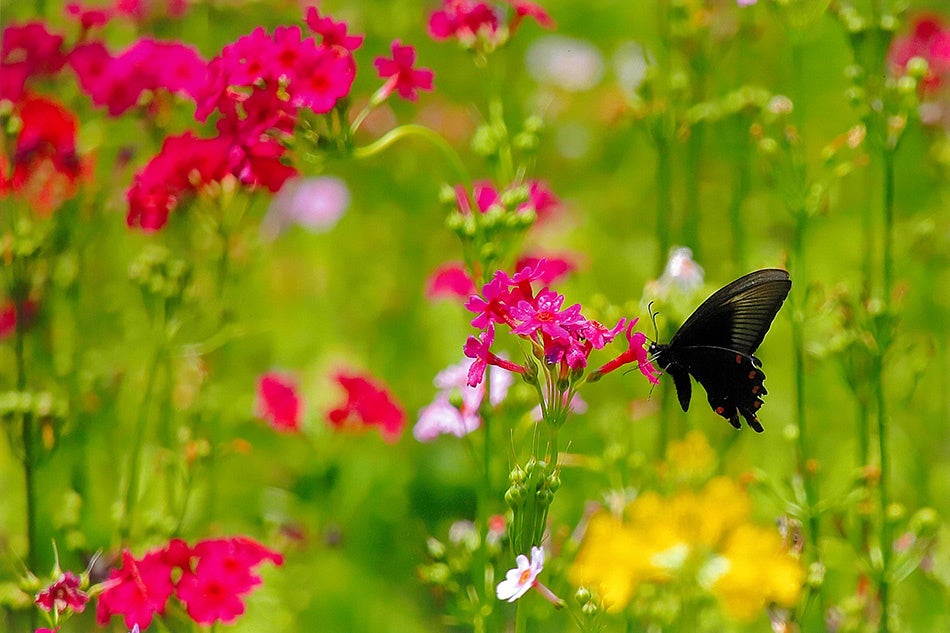 クリンソウ畑は時々出没する鳥さんたちや昆虫さんとのコラボもあり、人気のフォトジェニックエリアです。鳥さんたちや子どもたちとのコラボ写真はもう、それはそれはステキで、恒例の富士花鳥園フォトコンテストでは、ほとんど毎年、賞を獲得!
