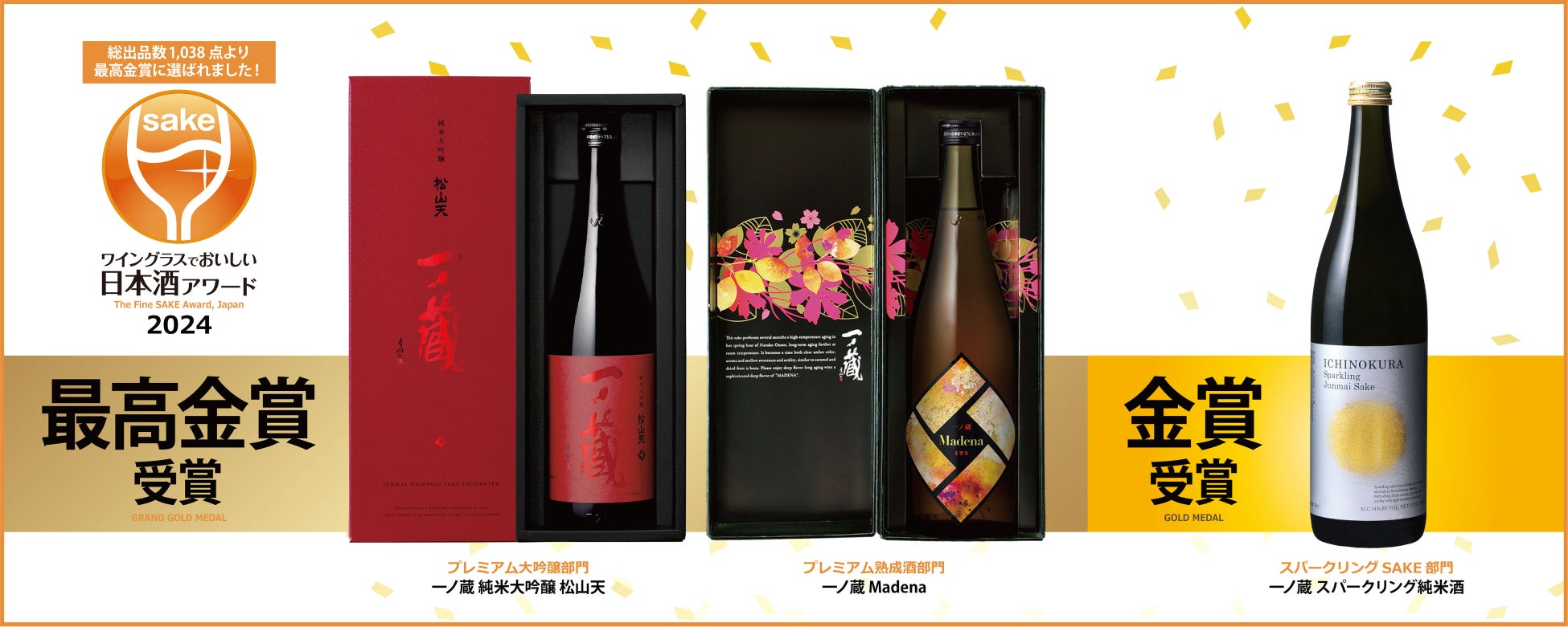 「一ノ蔵 純米大吟醸 松山天」、「一ノ蔵 Madena」が「ワイングラスでおいしい日本酒アワード2024」で最高金賞受賞!