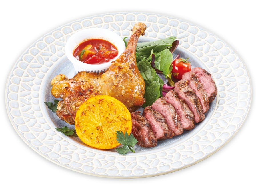 鴨のコンフィとステーキのアシェット ~ラタトゥイユソース~(税込1,979円)
