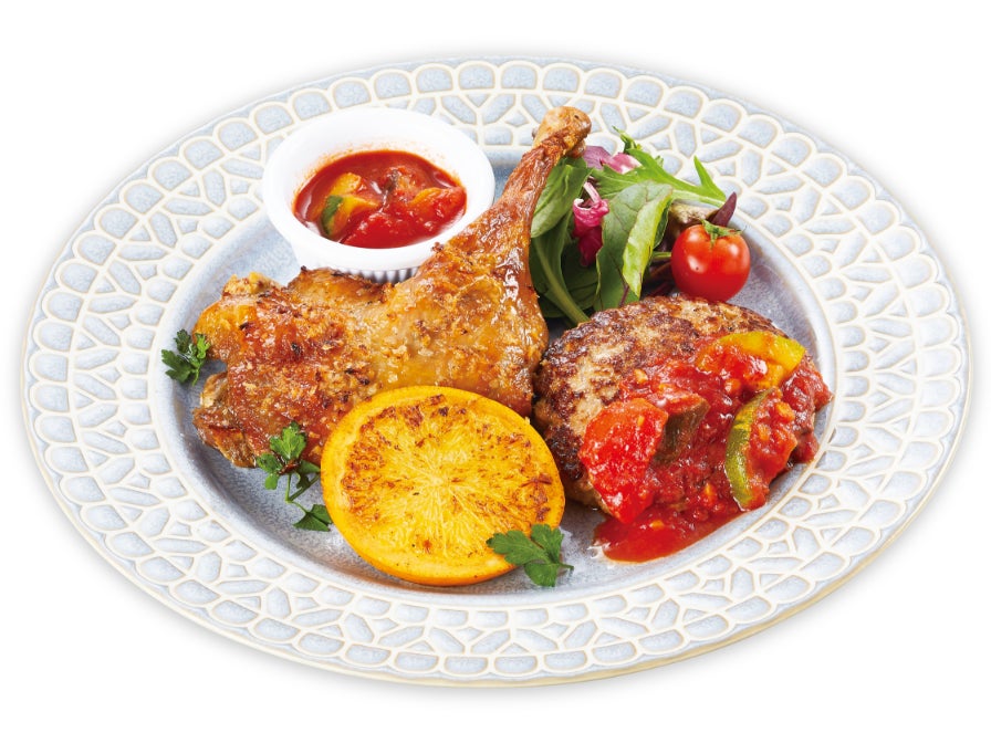 鴨のコンフィとハンバーグのアシェット ~ラタトゥイユソース~(税込1,759円)
