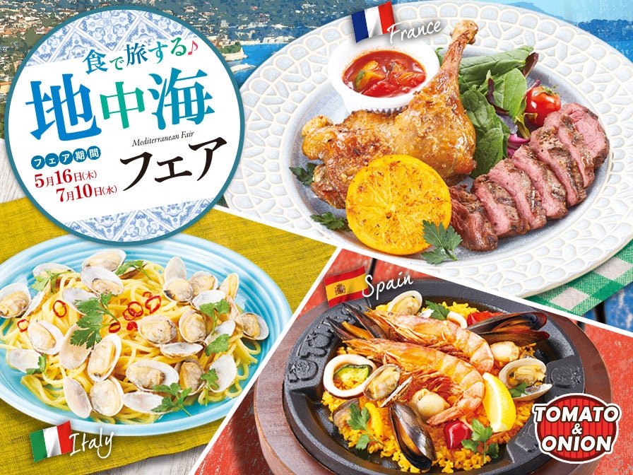 株式会社トマトアンドアソシエイツ(本社:兵庫県西宮市、代表取締役社長:小林 大二)が運営する、アメリカンダイニングレストラン「トマト&オニオン」では、2024年5月16日(木)より期間限定で「地中海フェア」を開催いたします。