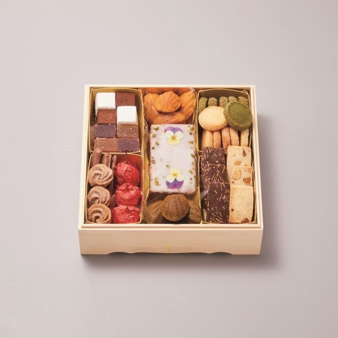 2018年に日比谷にオープン、日本の懐石料理の美意識とフレンチが融合した和フレンチレストラン。サブレやマドレーヌに和の要素を取り入れた、新年を彩るスイーツおせちです。