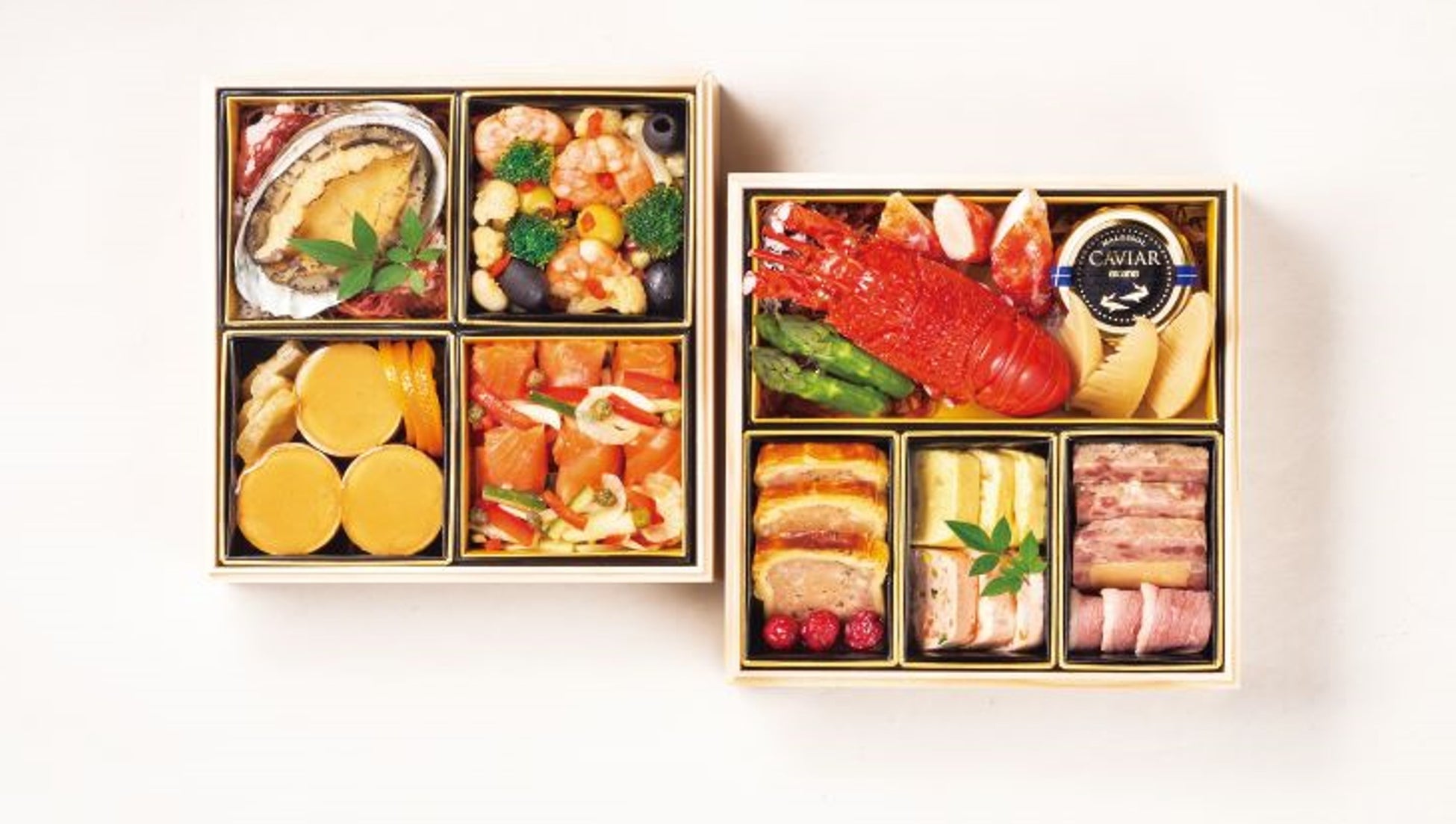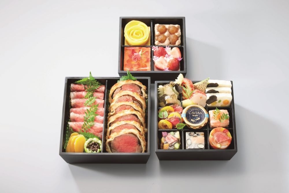 松阪牛を中心とした和洋の食材を使用し、フレンチと和の技法を駆使して作り上げたおせちは、レストランの美味をそのままお重に。