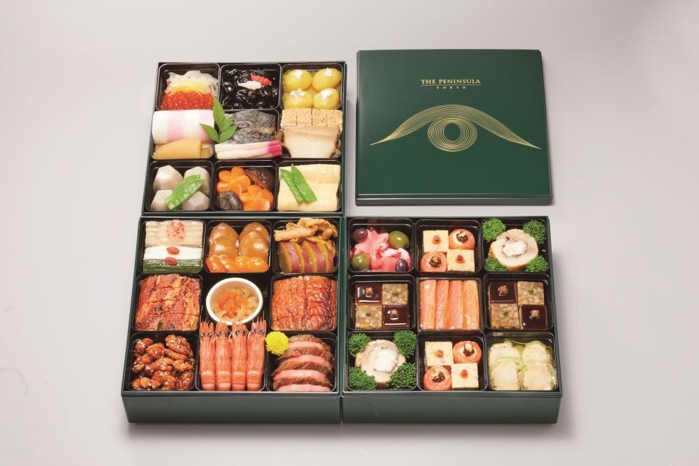 和洋中のホテルシェフたちの技が光る、ザ・ペニンシュラ東京ならではの特別なおせちのご紹介。鮑のオイスターソース煮など、バラエティに富んだ見た目も美しい三段重です。