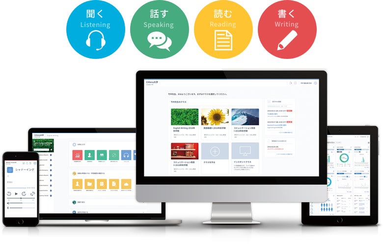 『CaLabo® MX』は、「聞く」「話す」「読む」「書く」に特化したクラウド型の語学学習支援システムです。授業時間外やスマートフォンでの学習も可能なBYOD(個人所有のPCを授業などで使用する)に対応しており、授業支援機能も備わっています。今回のバージョンアップでは、日々の授業で生じる細かな課題を解決し、教育現場のニーズに寄り添った機能を重点的に開発しました。先生方の授業運営をより一層スムーズにし、学生の皆様がより快適に学習に集中できる環境づくりに貢献します。