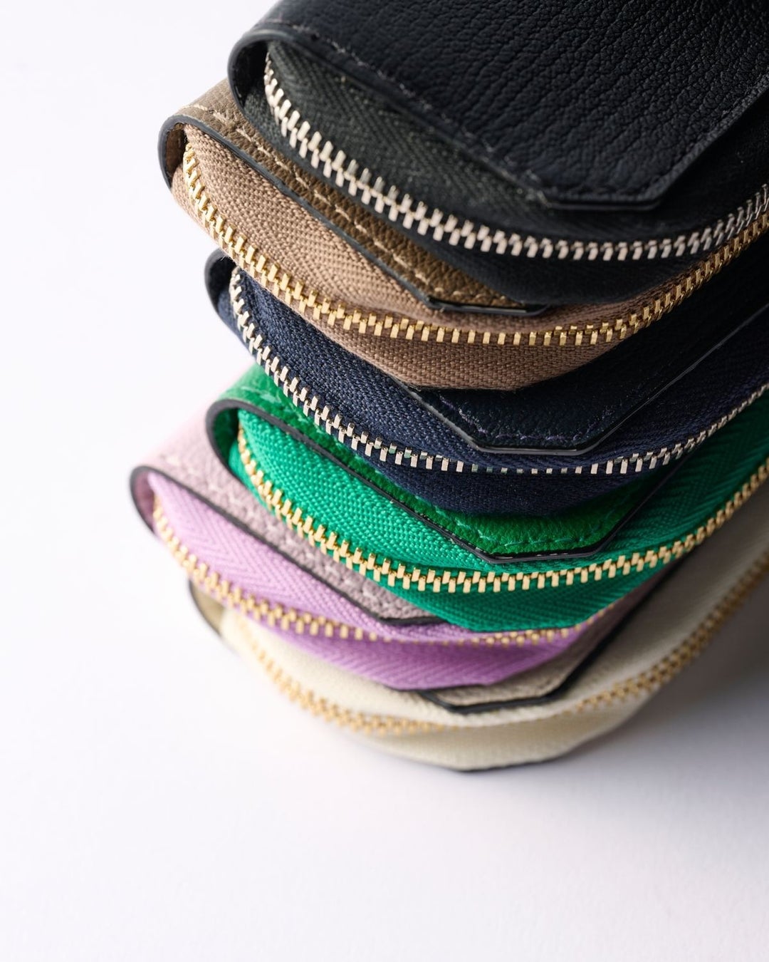 ペンケース同様、こちらも内側まで型押しのゴートレザーを使用することで、出し入れにより摩耗が気になる部分でも、傷や汚れがつきづらい仕様です。しっかりとした質感のゴートレザーを、これほどコンパクトなアイテムに使用するには、職人の高い技術力が必要。細部までコバ塗りを施した、イタリア職人の贅を尽くした造りは、メイド・イン・イタリーを貫くL'arcobalenoらしいアイテムです。