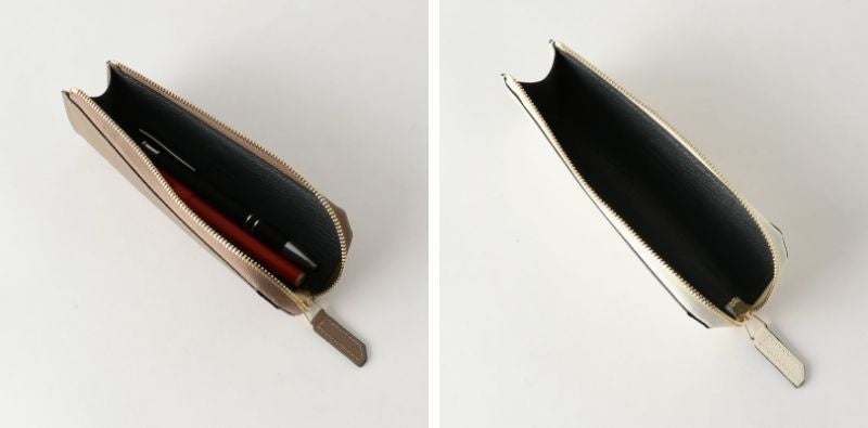 ペンケースは、頻繁に中身を出し入れすることにより、意外と短い期間で使用感がにじみ出てしまうアイテムですが、耐久性が特徴のゴートレザーを使用することで、美しい状態を長く保つことができるペンケースが誕生しました。また、ゴートレザーは型崩れしずらいことも特徴。くたびれた印象になることなく、きれいな型を長年保てることもうれしいポイントです。