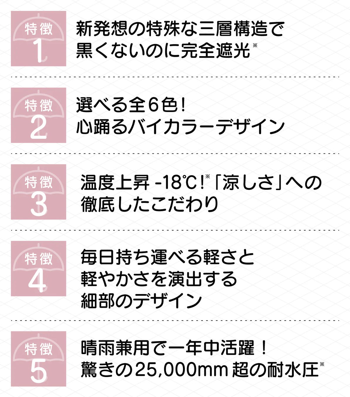 5. 晴雨兼用で一年中活躍!驚きの25,000mm超の耐水圧